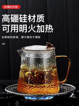 玻璃茶壶过滤泡茶壶家用耐高温加厚锤纹茶水分离泡茶器煮茶具套装 19.9元