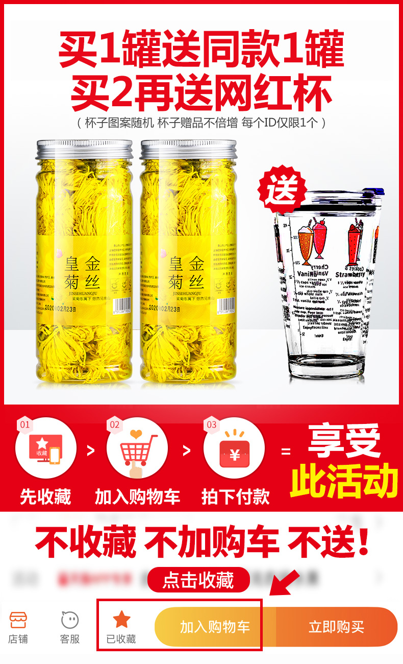 买2送1金丝皇菊大菊花茶大朵黄菊茶叶贡菊胎菊去火非特级金银花茶 抢10元券!