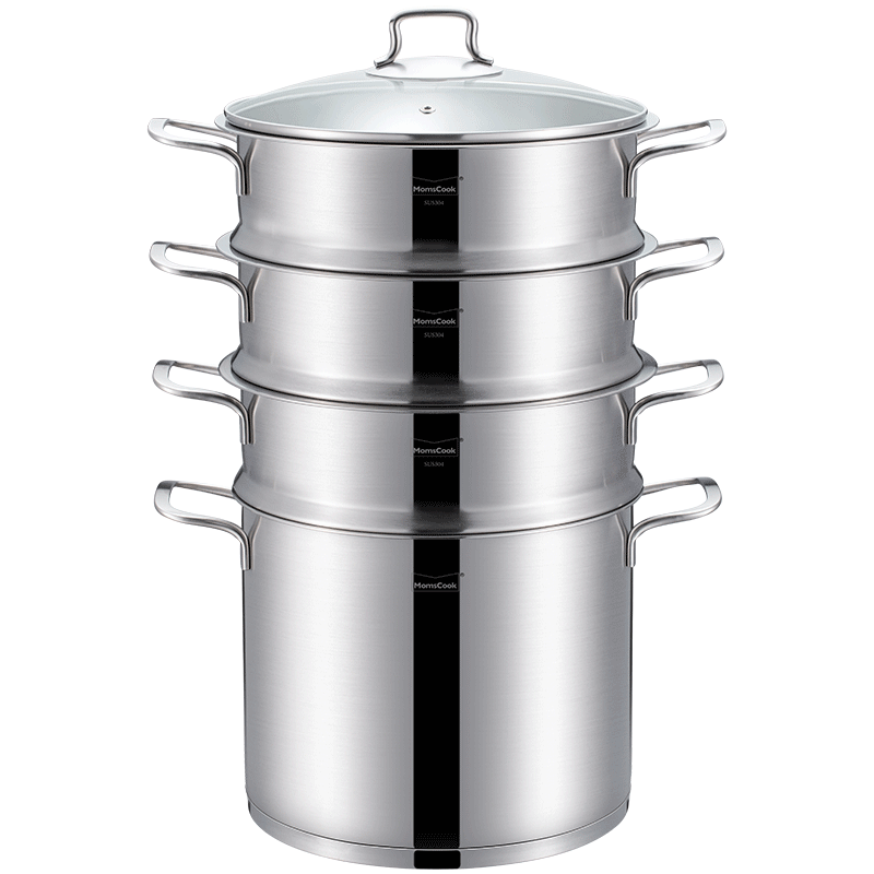 Momscook慕厨 304不锈钢蒸锅汤锅 三层蒸锅 多层蒸锅 电磁炉燃气通用 大容量汤锅蒸锅 24x20cm三层蒸锅( MT24ST3) 三层蒸锅