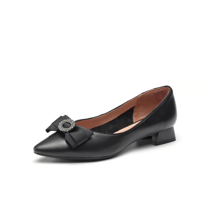 Tata他她商场同款女鞋单鞋女低跟浅口鞋蝴蝶结粗跟时尚尖头秋新XHZ04CQ1 黑色 37