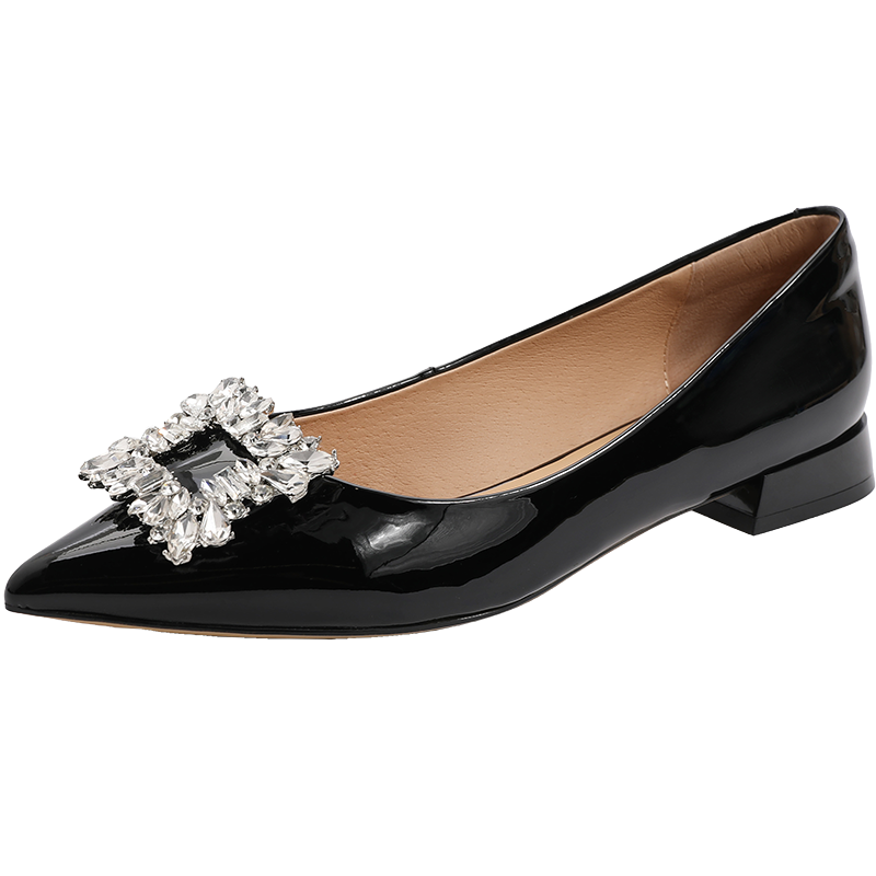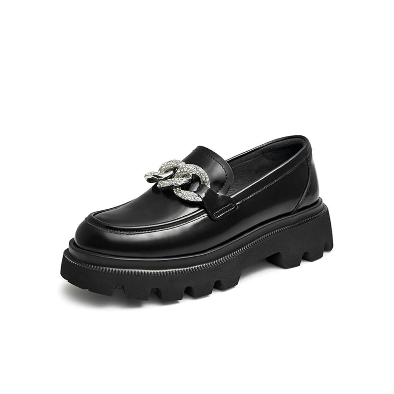 百丽皮鞋女2022秋季新商场同款时髦闪钻方扣牛皮革气质通勤单鞋女M0004CQ2 黑色 38