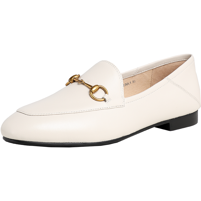 Bata乐福鞋女一脚蹬春秋新款英伦风真羊皮平底单鞋C1751AA1 米白 37