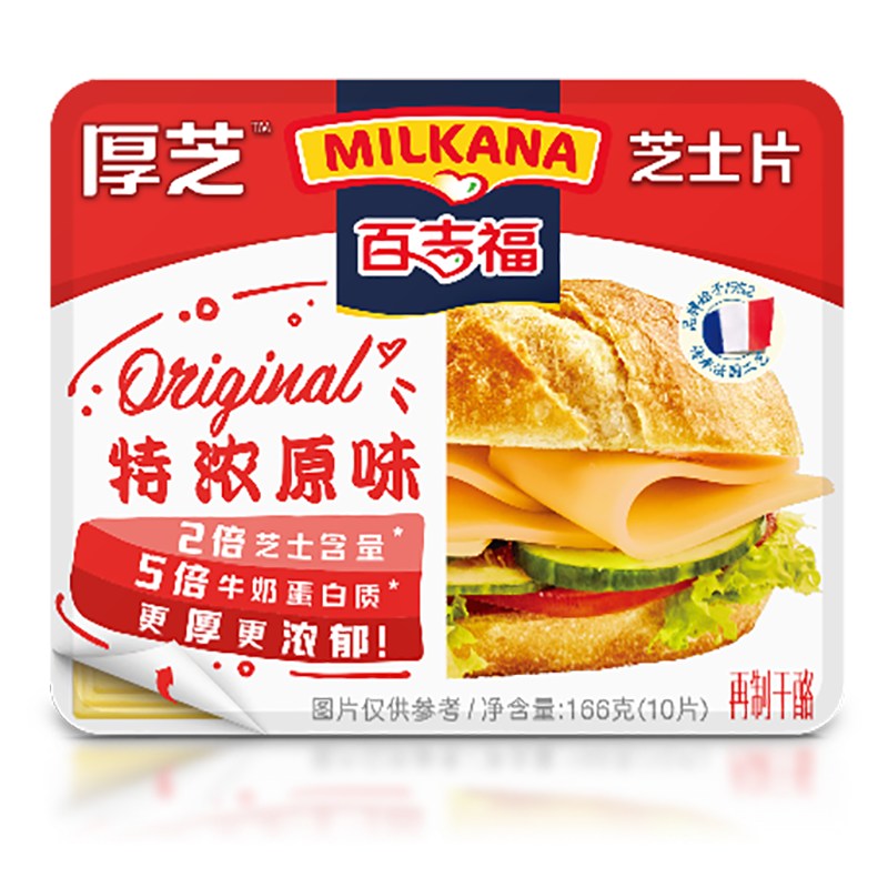 百吉福(MILKANA) 厚芝芝士片奶酪 特浓原味 166克/10片装 冷藏 即食 早餐烘焙