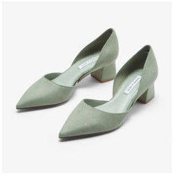 CHARLES & KEITH CK1-60920181 女士尖头粗跟单鞋,复古粗跟,简约纯色,优雅尖头设计。绿色为绒面面料,白色为压花皮面料,黑色为亮面漆皮面料。