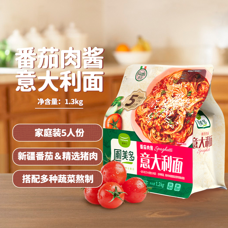 圃美多(Pulmuone) 番茄肉酱意大利面 1.3kg 5人份 家庭装 意面番茄酱 直身面 方便菜