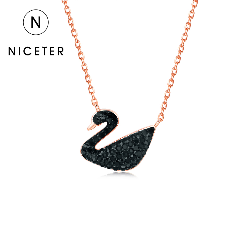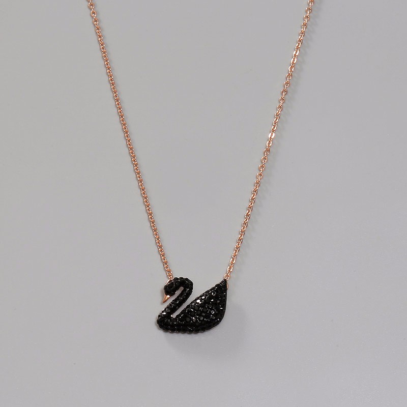 925纯银黑天鹅项链女潮人网红小天鹅镶钻短款玫瑰金锁骨链ins颈链 39元