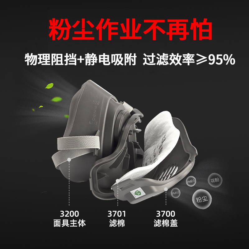 3M防尘口罩工业粉尘kn95防雾霾PM2.5面具水泥打磨煤矿工厂装修劳保电焊面罩 3200防尘套装KN95(配3701滤棉1片)