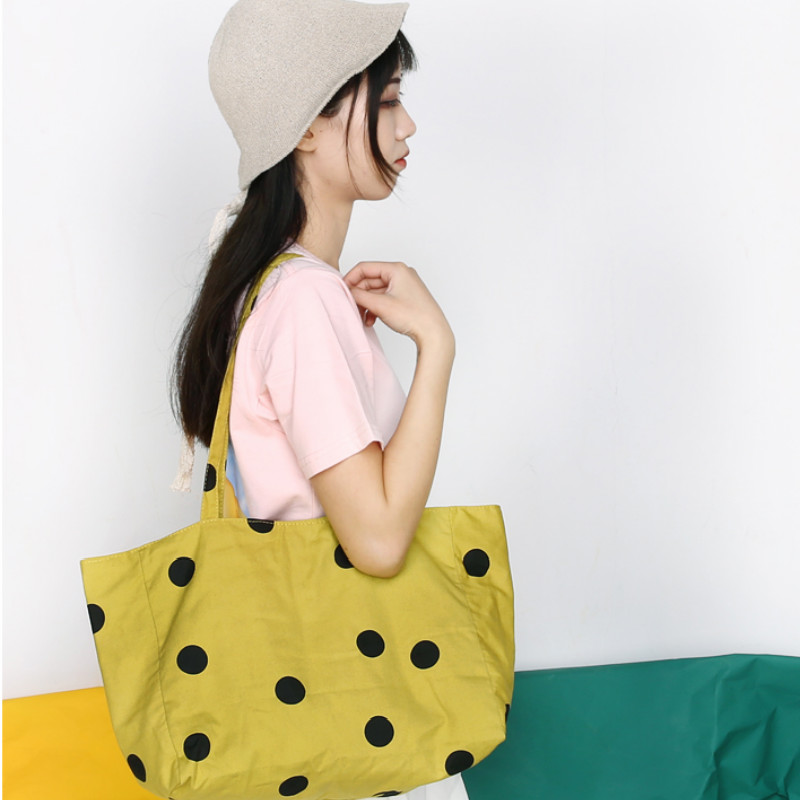 三色补丁原创品牌,超大容量的帆布包,日系波点好搭配适合夏天。不起球耐用耐磨,轻盈无束缚