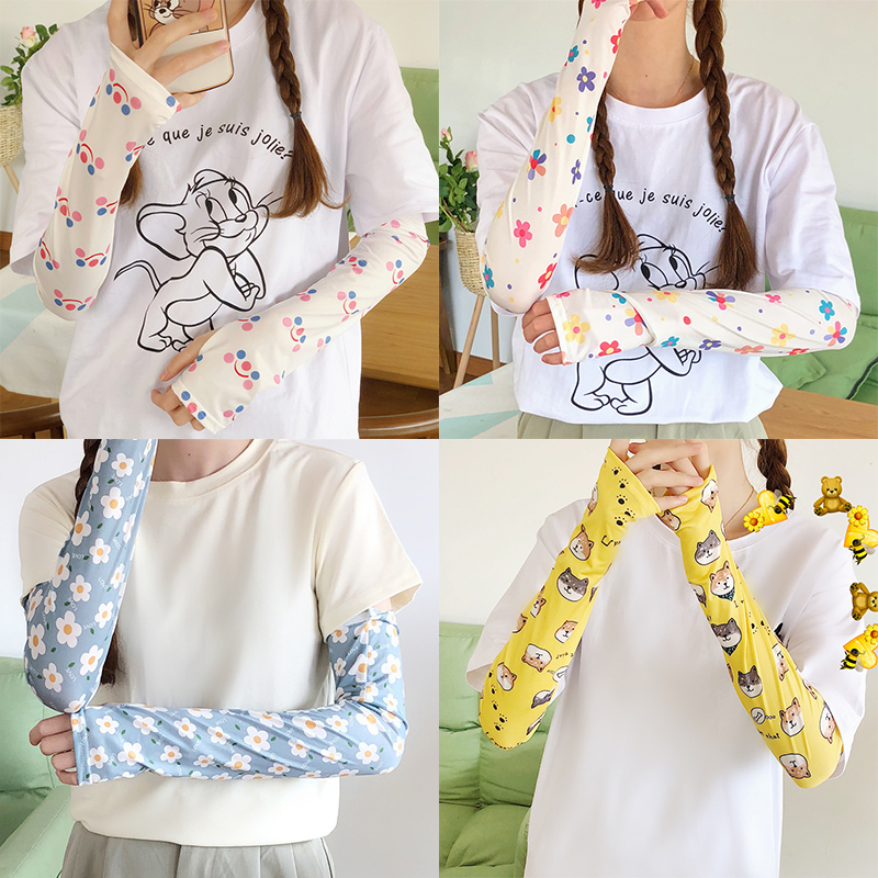 防晒手袖护臂夏季可爱弹力透气百搭冰丝手套薄款袖套卡通图案冰袖 6.9元