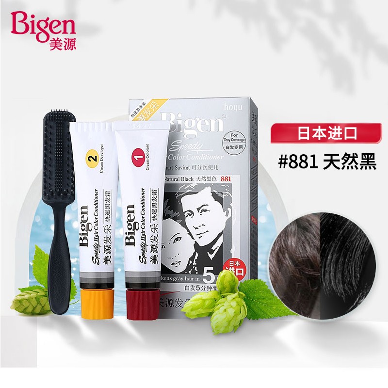 美源(Bigen)发采快速黑发霜 80g(天然黑 881)日本进口染发霜/染发膏 男女兼用 快速染发 护发不伤发