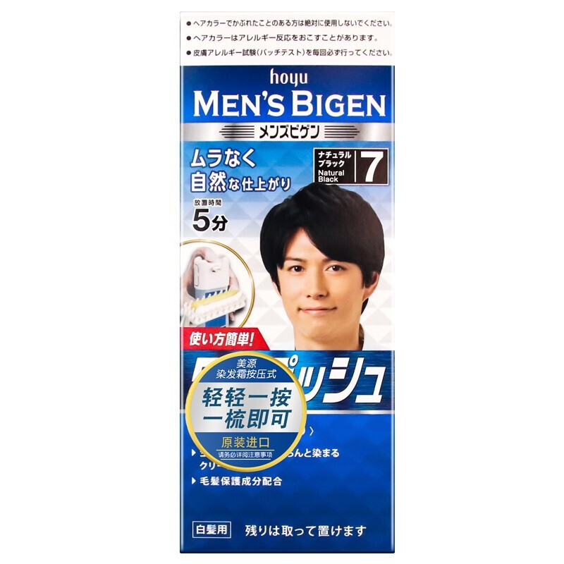 美源(Bigen)男士染发剂日本进口原装快速植物遮盖白发染发膏霜 7号自然黑色