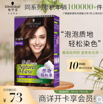 施华蔻(Schwarzkopf)怡然染发摩丝3.68落霞暖棕(泡泡染发剂 草本染发膏 无氨遮白发 男女通用)