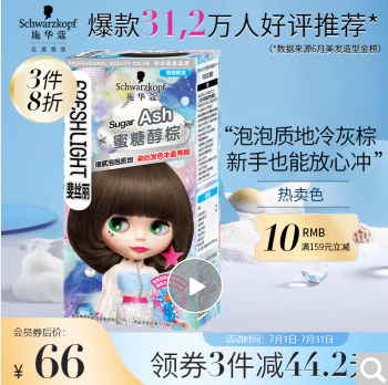 施华蔻斐丝丽,是全球知名的*级时尚玩偶Blythe娃娃与施华蔻联合设计的系列品牌,外包装比较受萌妹子们欢迎。这款Schwarzkopf 施华蔻 斐丝丽系列氨基酸泡泡染发剂,富含8种氨基酸成分,保护秀发柔韧性,自然莹亮,柔润顺滑,绵密泡泡,染发更健康,上色更安心。使用起来方便,只要混合后换上起泡喷嘴,即可压出绵密泡沫,像平时洗发一样在发丝上轻轻按摩并停留即可。含有兰花提取物和保湿润护成分,能够在染发的同时深层修护,使发丝染后顺滑。 阅读全文