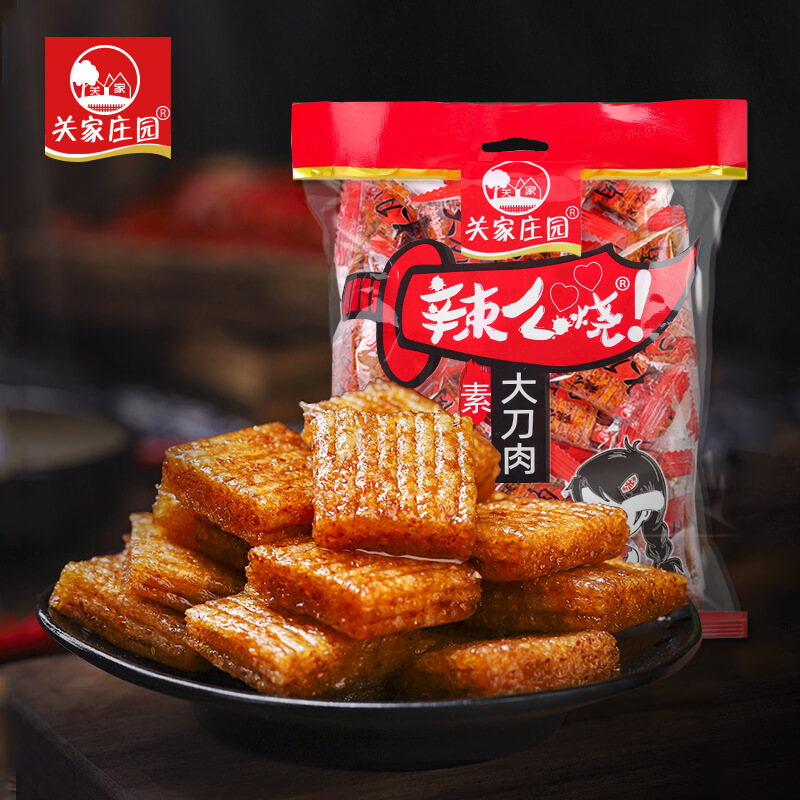 【1大包约36个】关家庄园~素食大刀肉仅售6.9元,好吃又实惠!!精选优质食材,美味鲜香,秘制香料,麻辣爽口,下酒下饭当零食都行!赠运费险!