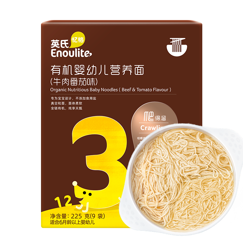 英氏(Engnice)婴幼儿辅食面条 牛肉番茄味 宝宝面条 婴儿营养面条有机辅食 儿童线面225g