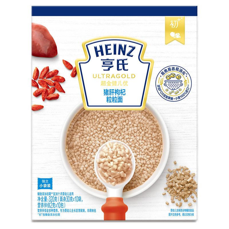亨氏 (Heinz) 金装猪肝枸杞粒粒面320g(婴儿辅食 营养面条 碎碎面 宝宝辅食添加初期-36个月适用)