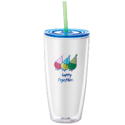 乐扣乐扣(LOCK&LOCK)双层杯身易开盖易清洗配备吸管塑料杯 HAP516WHT-冰激凌-750ML复古白