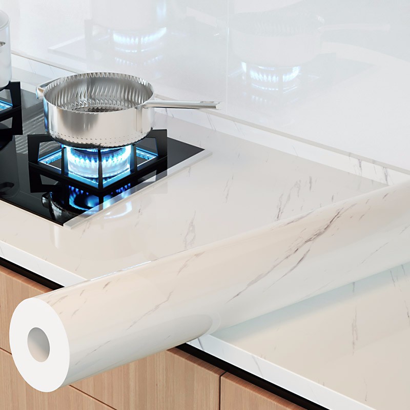5米厨房贴纸加厚防水PVC大理石纹厨房防油贴纸柜灶台用家具翻新贴瓷砖贴纸 迪拜灰-宽60cm*长5米(破损免费补寄) 大