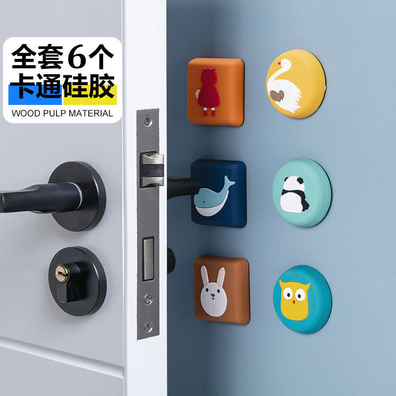 欧凯奇 门把手防撞垫冰箱门防撞贴家用门后门贴墙面桌角橱柜床头卡通硅胶 全套6个装 -