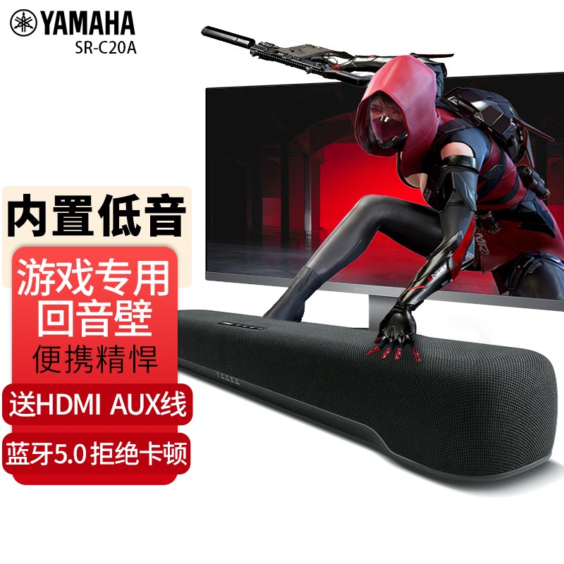 雅马哈(YAMAHA) SR-C20A电脑音响 蓝牙音响家庭影院 虚拟5.1声道环绕游戏电视回音壁 SR-C20黑色 现货
