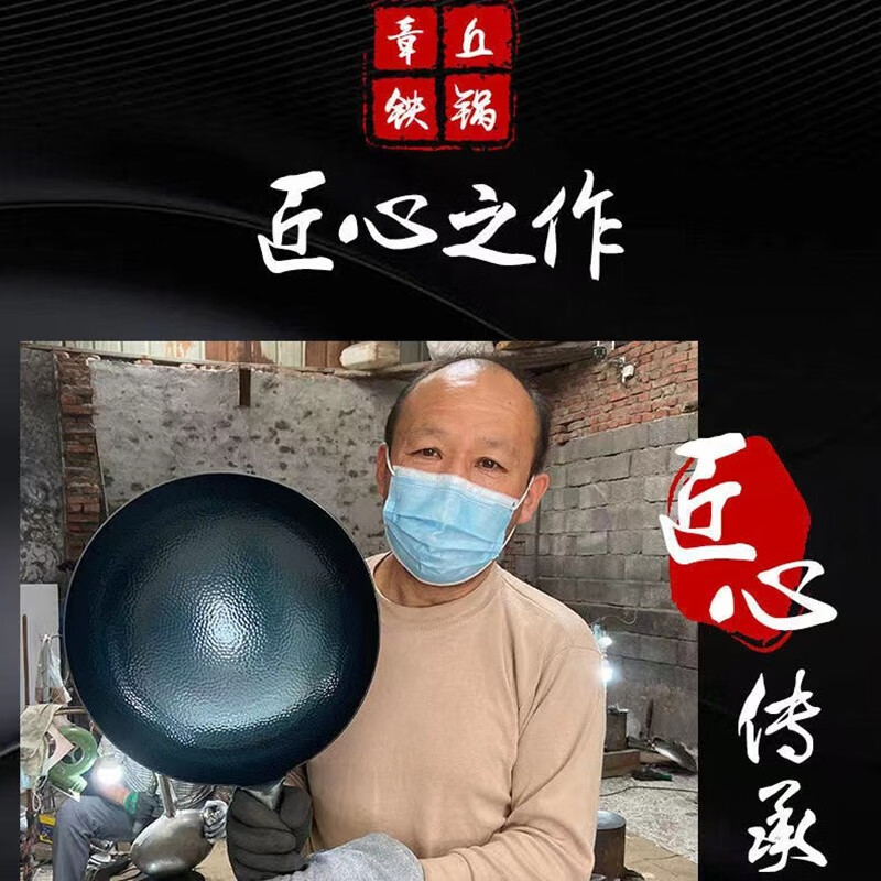 万代传 章丘铁锅 鱼鳞锅 炒锅无涂层炒菜锅圆底手打锅物理不粘锅锻打老式传统家用燃气灶锅具 手工锻造30cm鱼鳞纹款【已开锅】