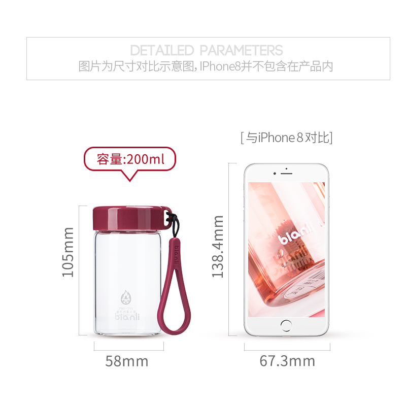 bianli 单层玻璃水杯女简约清新小巧家居办公水杯防烫防漏花茶杯子学生情侣礼物便携随手杯 西柚红