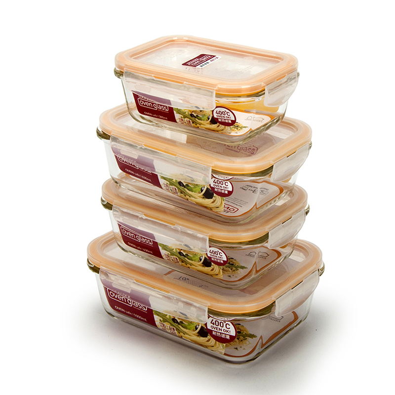 乐扣乐扣(LOCK&LOCK) 保鲜盒 微波炉饭盒玻璃便当盒四件套(380ml+630ml*2+1000ml) LLG445S911