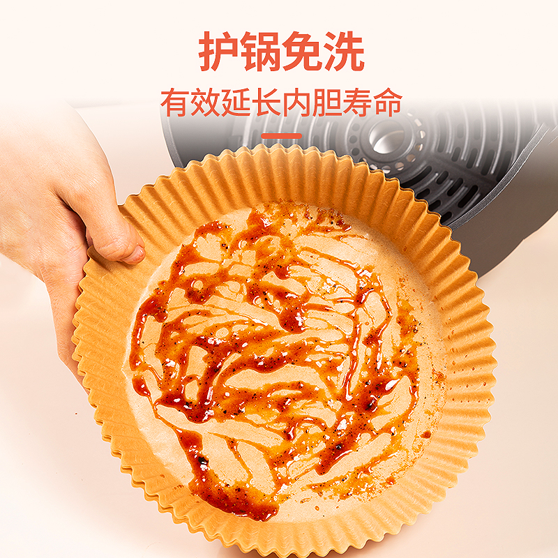 富得 空气炸锅专用纸 圆形烘焙吸油纸 硅油纸 蛋糕烤肉烧烤纸托方形 烤箱锡纸垫纸 圆形16cm原色100片