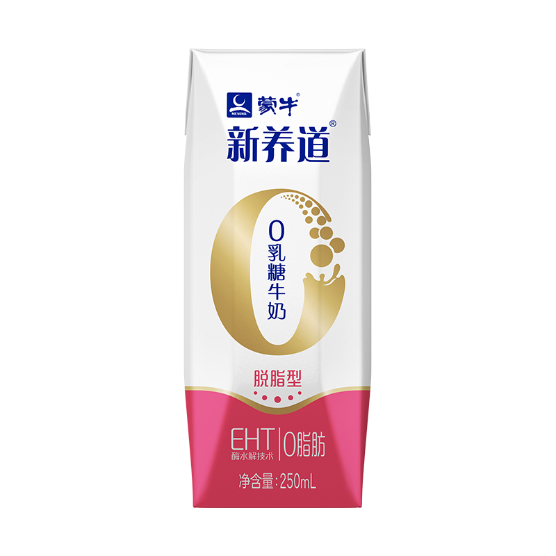 蒙牛 新养道零乳糖牛奶无乳糖牛奶0乳糖早餐奶礼盒装 送礼佳选 【脱脂型】250ml×12盒*2箱