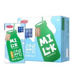三元小方白脱脂纯牛奶200ml*24礼盒装 0脂肪 健身伴侣