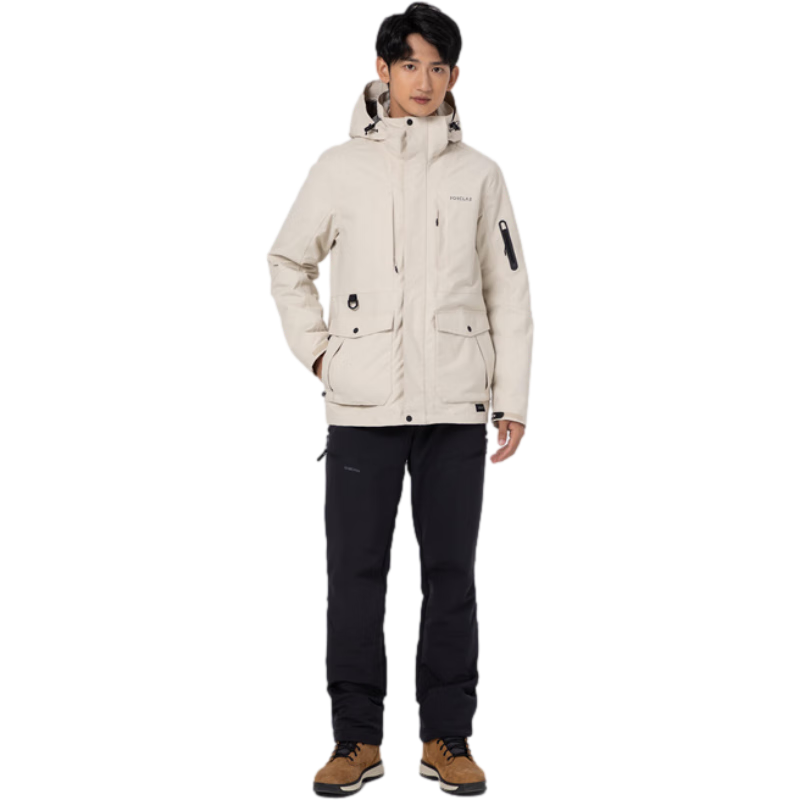 迪卡侬(DECATHLON)户外防风羽绒内胆夹克外套男女三合一可拆卸加厚FOR1 男款 浅白垩灰 L