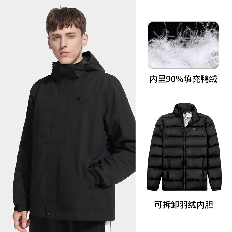 骆驼三合一羽绒内胆男女冲锋衣加绒加厚防风防水外套羽绒服登山服 U1W270373尘青,男 L