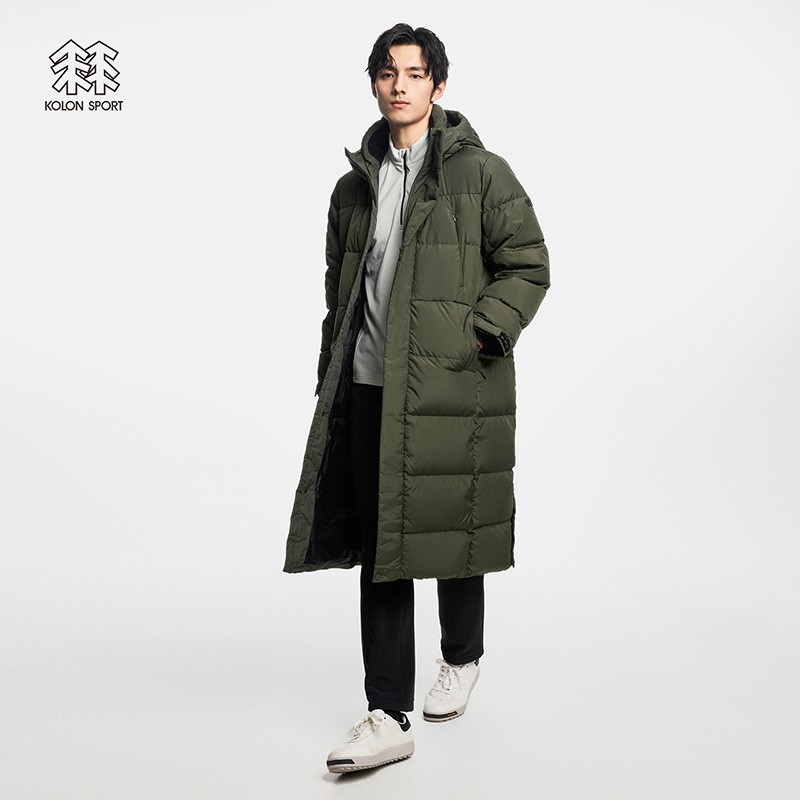 【李佳琦推荐】KOLON SPORT/可隆长款羽绒服 男子冬季户外防风防泼水保暖徒步露营加厚鹅绒服 LHDJ1WTT53-KH 军绿 170/M