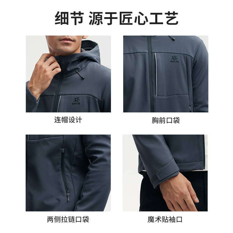 凯乐石软壳冲锋衣男加厚户外秋冬21新款防风加绒保暖连帽软壳衣 宝墨蓝 L