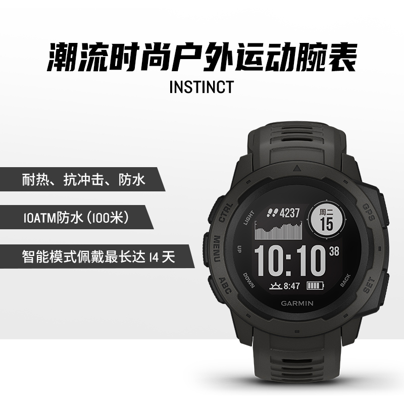 佳明(GARMIN)Instinct™本能GPS蓝牙心率户外运动健身智能手表送男女友礼物四星定位跑步骑行游泳 石墨灰