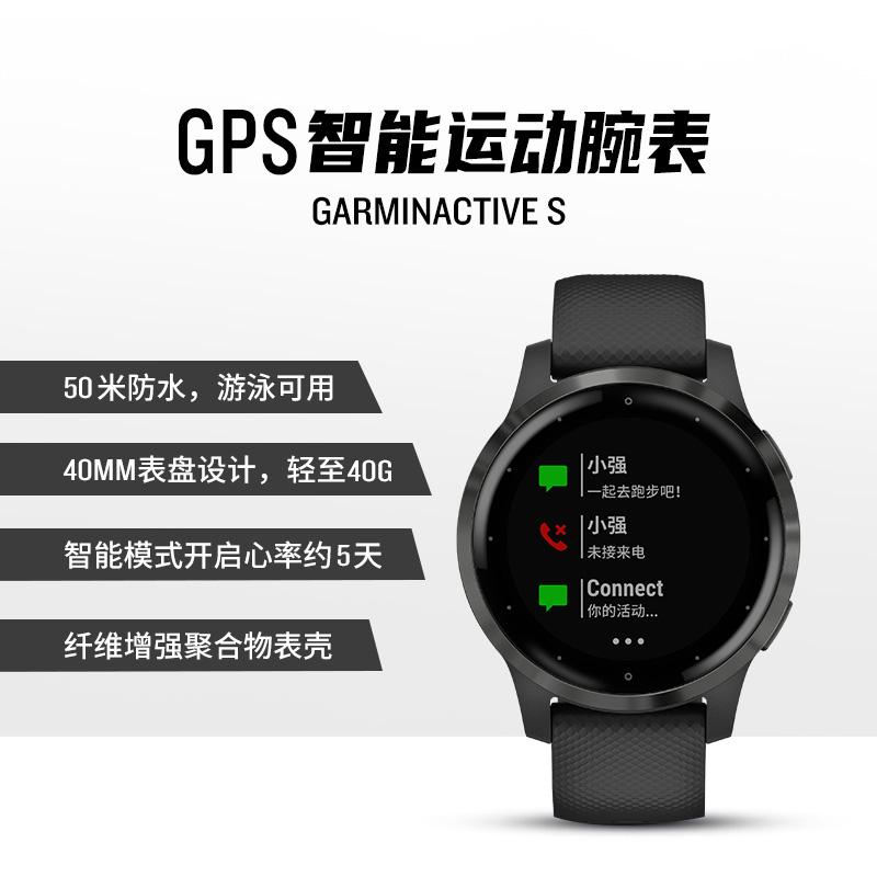 佳明(GARMIN)GarminActive S 魔力黑小码光学心率血氧音乐支付高尔夫户外运动跑步骑行游泳触屏智能手表