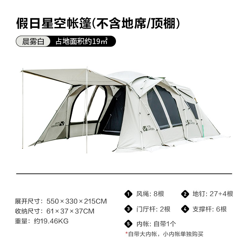 牧高笛(MOBIGARDEN)帐篷 户外精致露营大空间防风防雨4人家庭隧道帐篷二代假日星空 帐篷/晨雾白