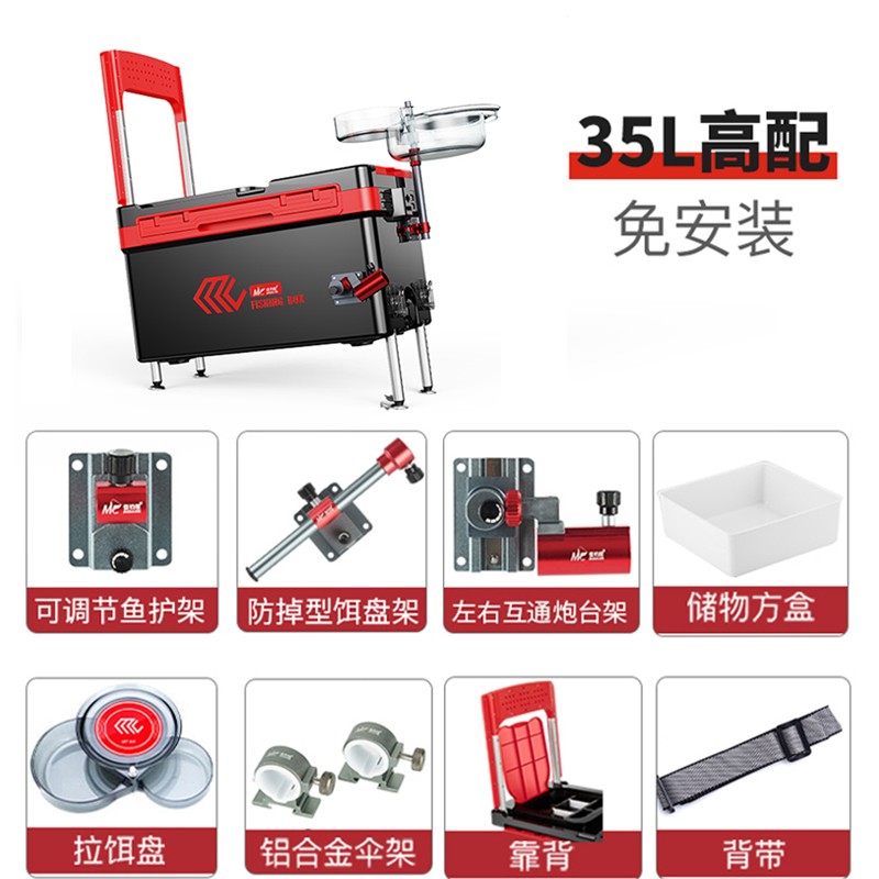 佳钓尼(JIADIAONI) 大容量钓箱全套多功能钓箱钓椅四脚升降台钓箱钓鱼箱渔具 35L-A01 黑红(高配)