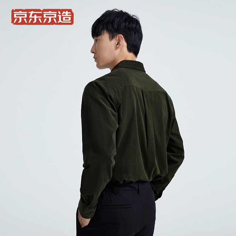 京东京造 衬衫男全棉灯芯绒休闲衬衫百搭工装休闲外套 橄榄绿 41(175/96A)