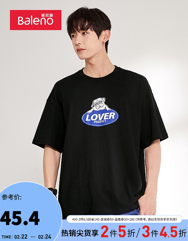 班尼路夏季款休闲圆领印花TEE短袖T恤男趣味动物图案个性潮流情侣装时尚青年舒适简约宽松上衣 00A-88002207 M