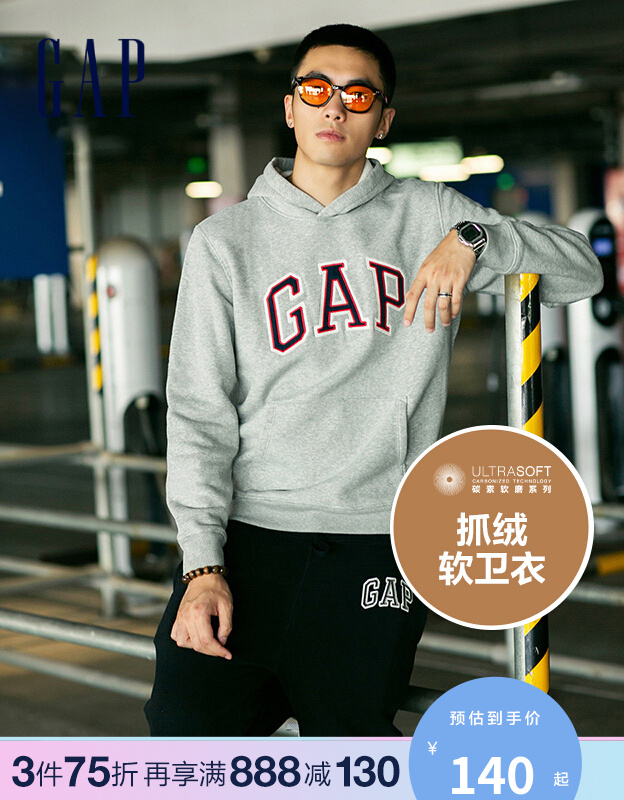 Gap 男女装LOGO碳素软磨抓绒连帽卫衣791339 春秋新款情侣休闲上衣 浅灰色 170/84A(XXS)