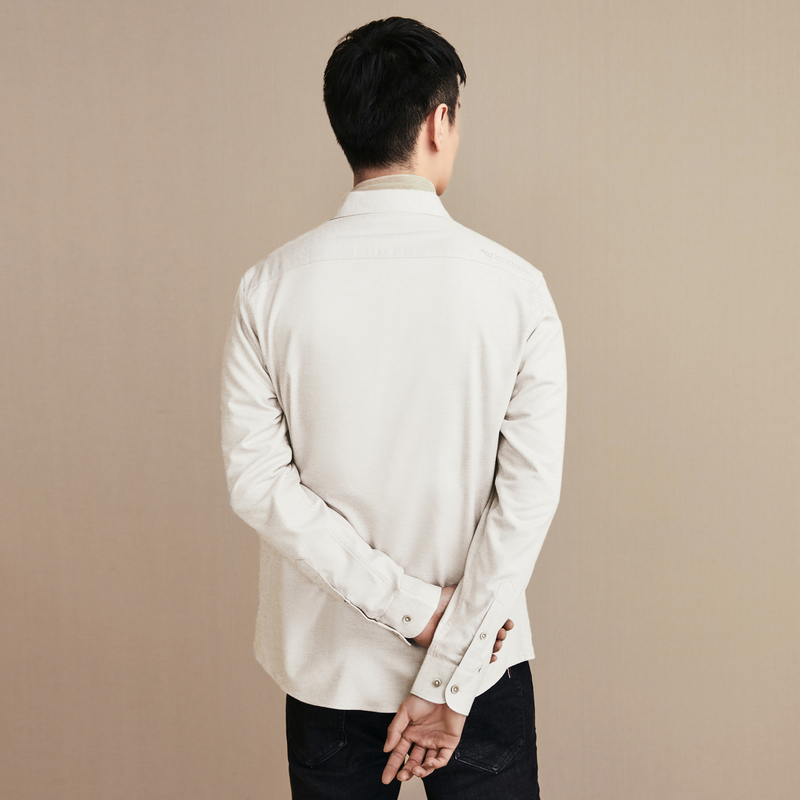 经典圆角袖口,衣襟质感纽扣。