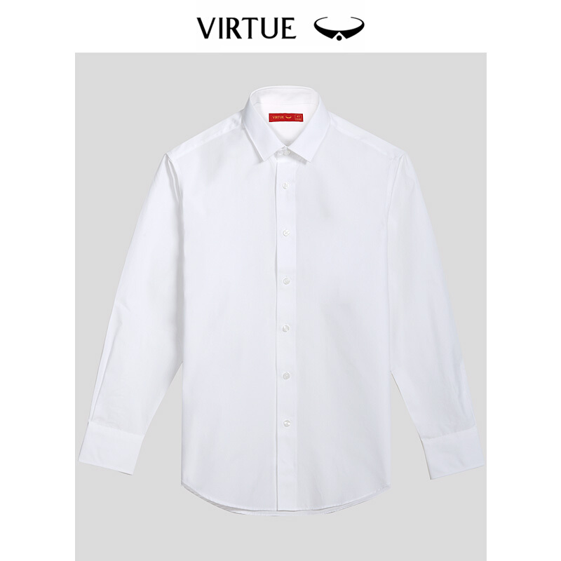 Virtue富绅商务休闲纯色长袖正装衬衫男提花小方领修身职业装男士衬衣 平纹-白色00CC210LM-2-8 42