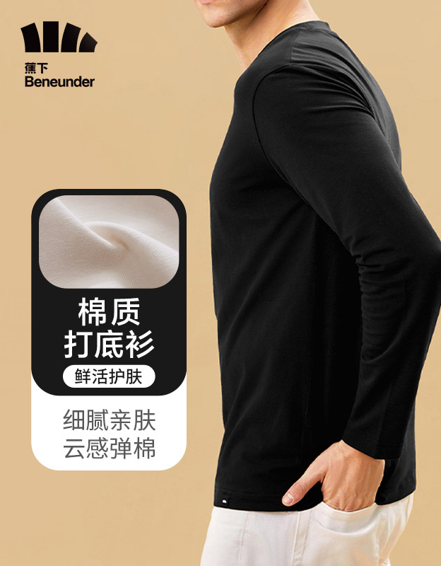 蕉下打底衫男2021冬季新款棉质圆领长袖T恤保暖秋衣舒适百搭上衣2021柔空系列棉质打底衫 云碳黑 175/96A(L)