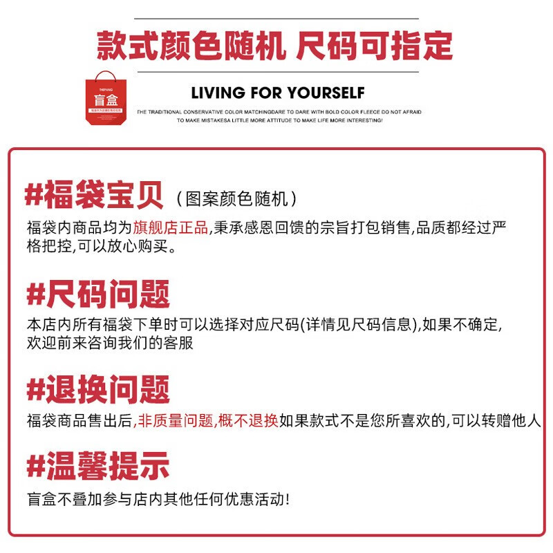 款式颜色随机,尺码可指定。福袋商品售出后,非质量问题,概不退换。 阅读全文 -