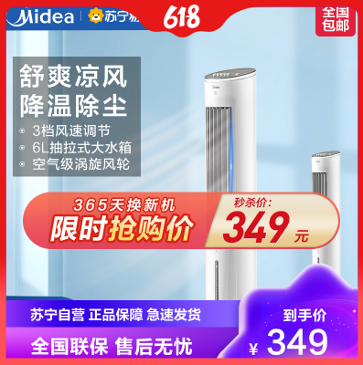 【美的风扇清凉季,赠365天换新机,咨询客服有惊喜】降温、除尘、加湿三效合一,6L大水箱,广角送风双冰晶制冷,三挡调节满足不同场景使用