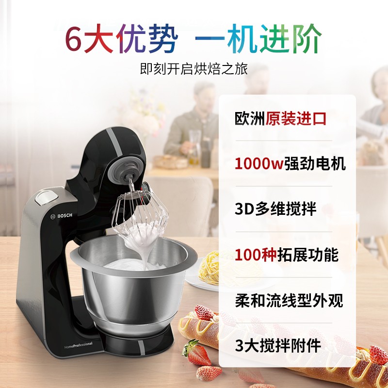 博世(Bosch) 进口厨师机家用和面机揉面机打蛋器料理机达人系列 曲奇黑+绞肉附件套装