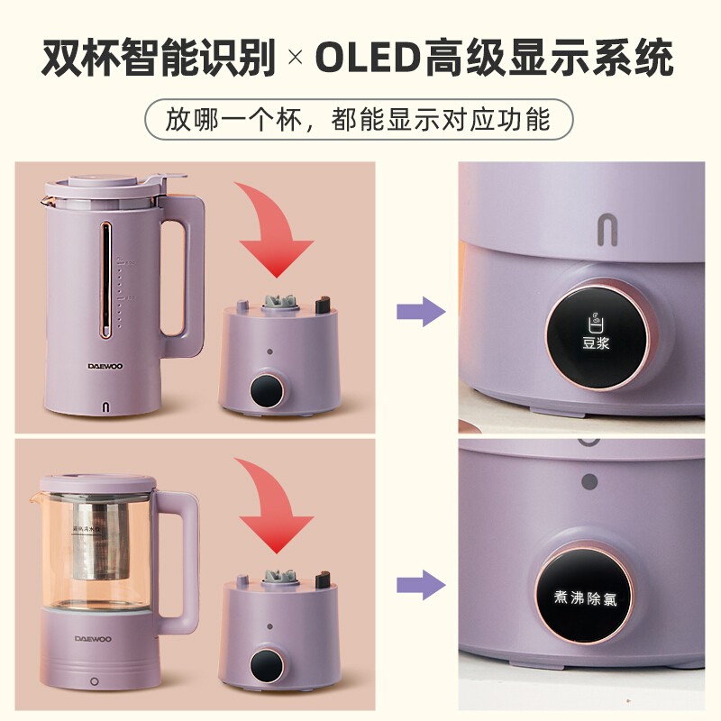韩国大宇(DAEWOO)破壁机加热家用迷你小型豆浆机料理机榨汁机辅食机多功能全自动智能预约养生壶 暮光紫(单破壁机)