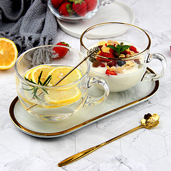 恩也 金边早餐玻璃杯 480ml 可微波牛奶麦片碗 9.8元
