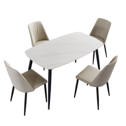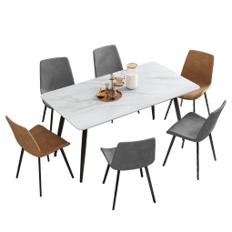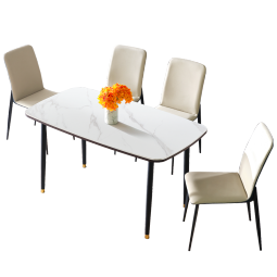 全友家居 可唯金岩板餐桌椅组合 意式轻奢金属框架饭桌家用 国民家居桌子家具 餐桌B+箸椅*4